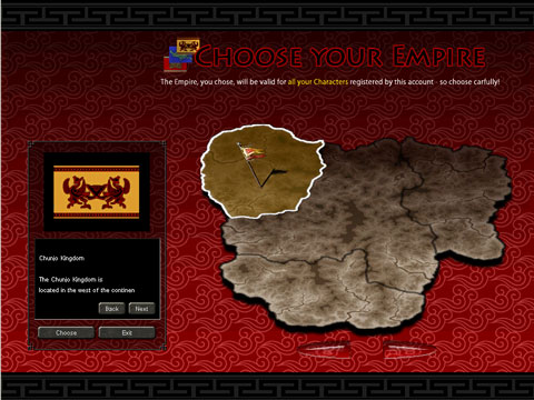 Before you can create a new character, choose one of the three available empires. You will start the game in your chosen empire. Click on 'Create'.